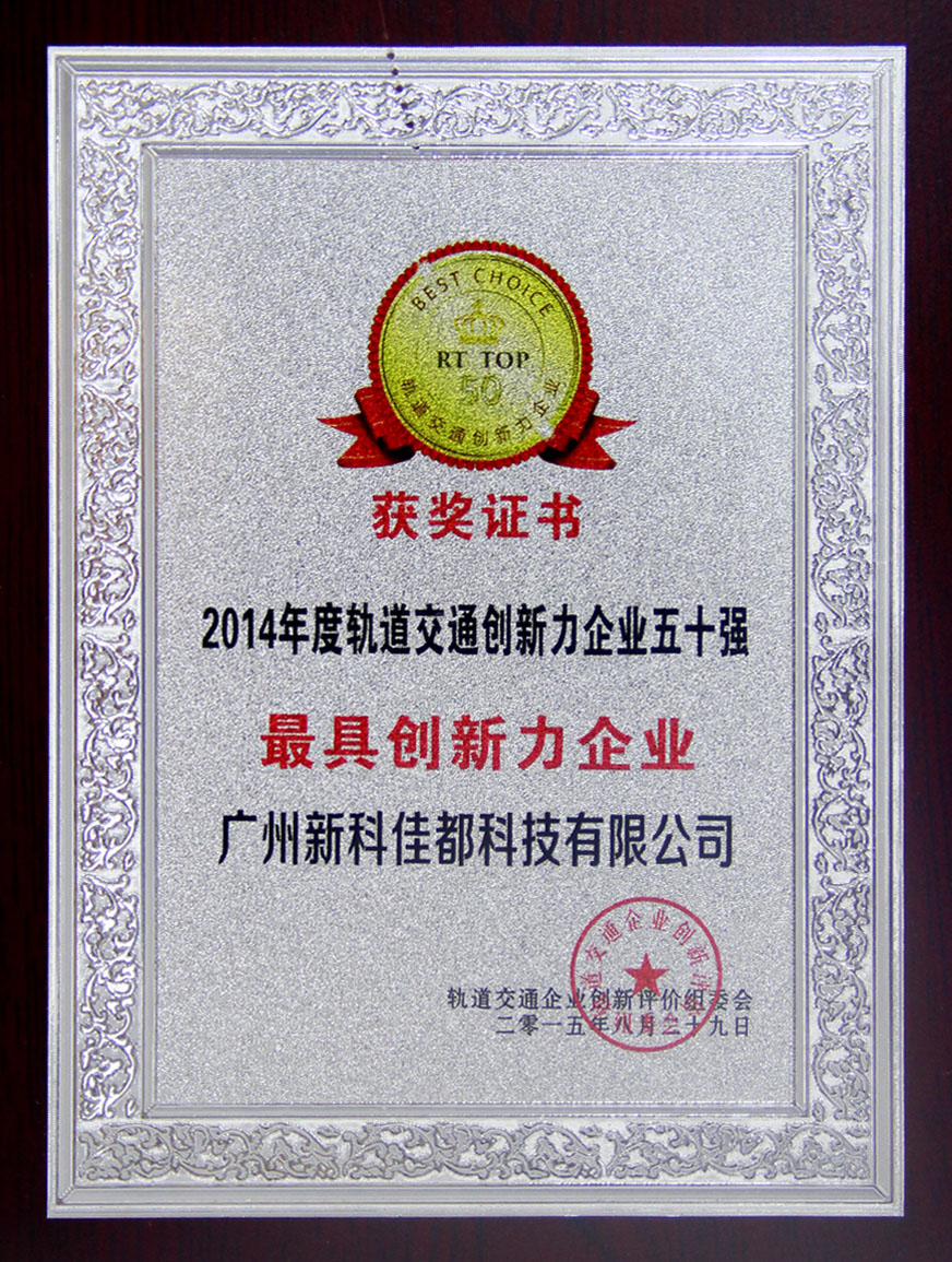 2015年8月29日,「RT TOP 50」2014軌道交通創新力企業50強評選活動頒獎盛典在上海淳大萬麗酒店隆重開幕,佳都科技以綜合實力和產品創新力脫穎而出榮獲創新企業50強稱號。另外,其自主研發的大型綜合監控系統軟件平臺(MICS)還被評為2014年度軌道交通創新產品獎。